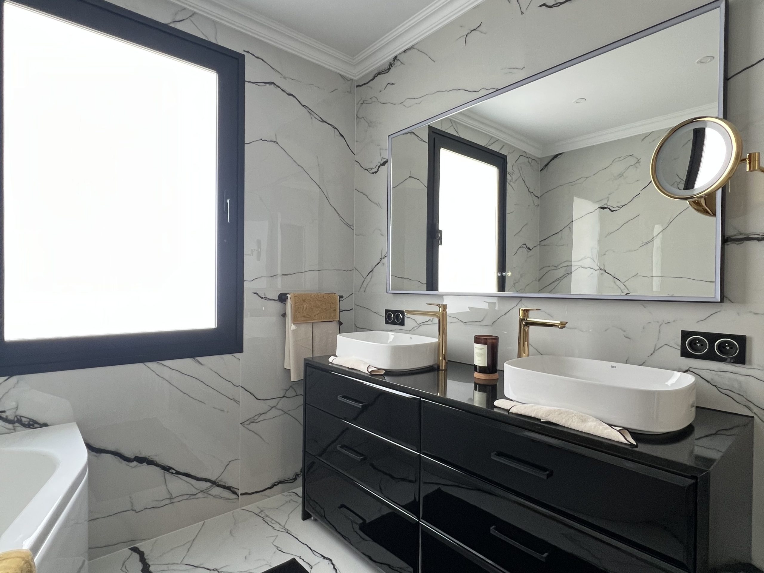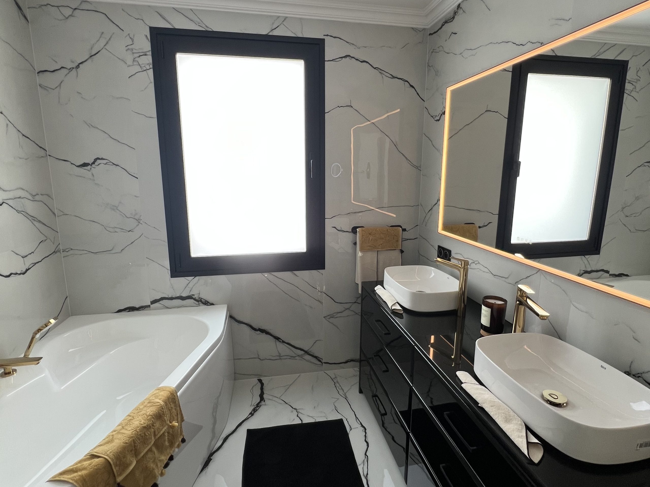La amplia cocina independiente, equipada con electrodomésticos nuevos como lavadora, lavavajillas, horno y microondas, tiene acceso directo a la terraza, que rodea toda la casa y cuenta con varias zonas de estar, ideales para disfrutar de la sombra en los días calurosos de verano. Se vende completamente amueblada y equipada. La villa cuenta con una terraza en la azotea de 85 m², un lugar excelente para disfrutar con amigos y familiares, con impresionantes vistas al océano y la costa.