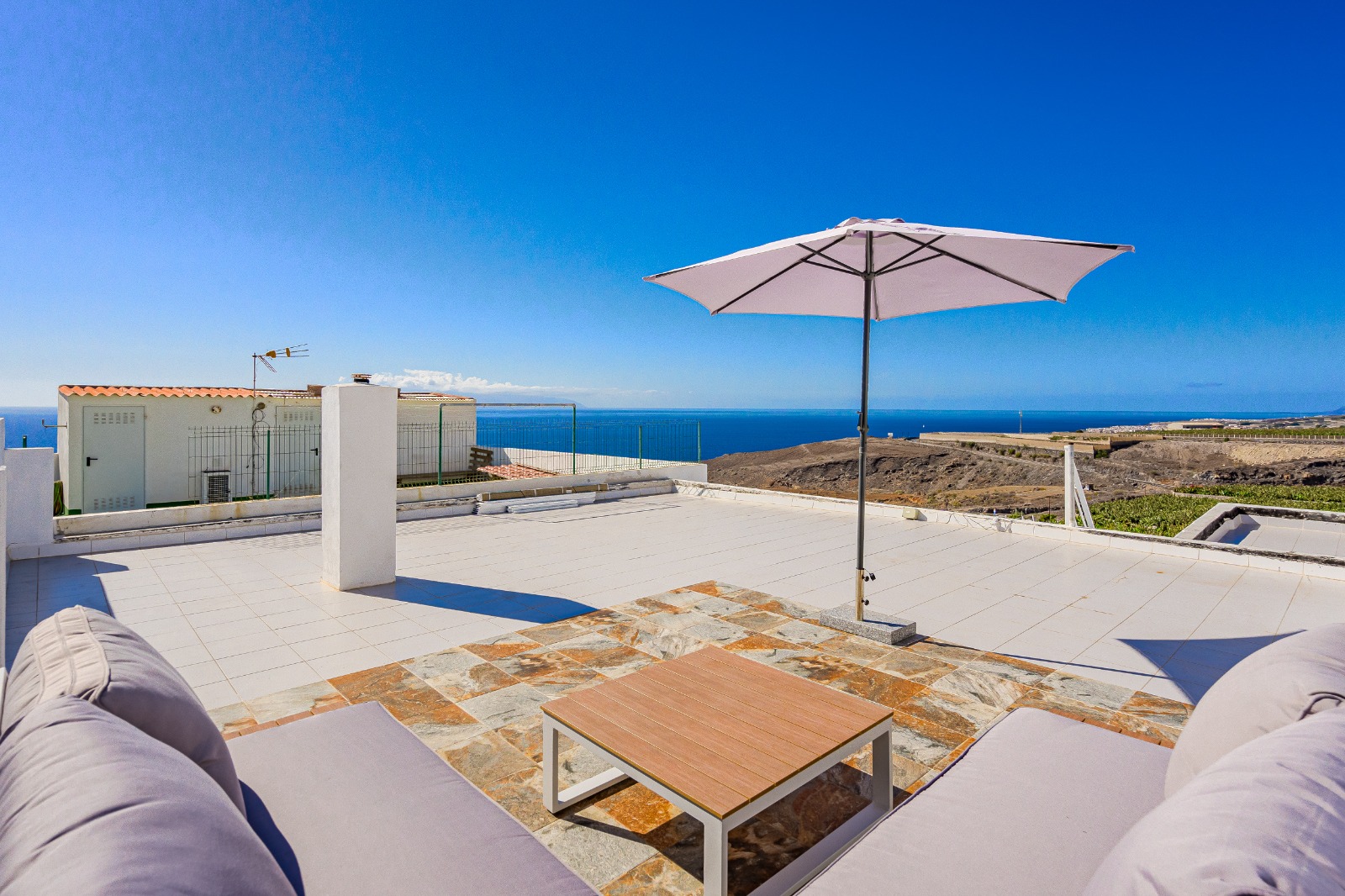 Las viviendas están ubicadas en una tranquila zona residencial en la costa de Tenerife sur-oeste, a tan solo cinco minutos de todos los servicios, incluyendo una parada de autobús cercana. Esta propiedad combina cierta tranquilidad, un poco alejada del centro turístico y una excelente accesibilidad.
