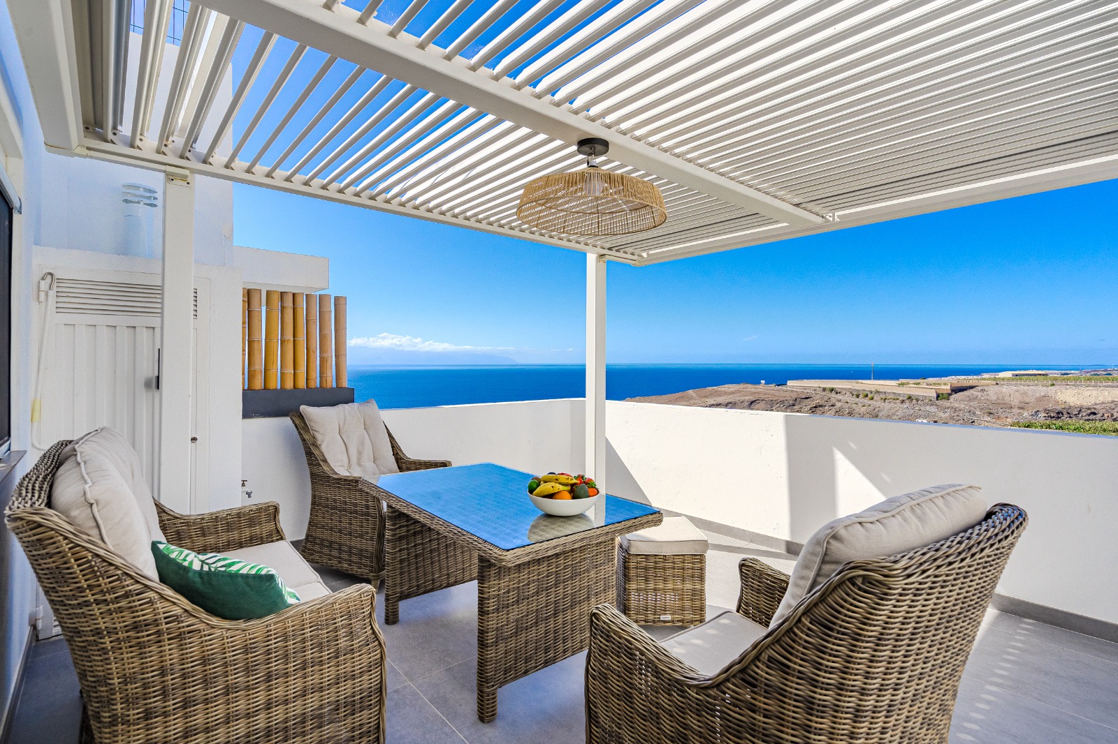 La propiedad ofrece impresionantes vistas al mar y a los imponentes acantilados de Los Gigantes. Ambos apartamentos están listos para entrar a vivir y decorados con mucho gusto.