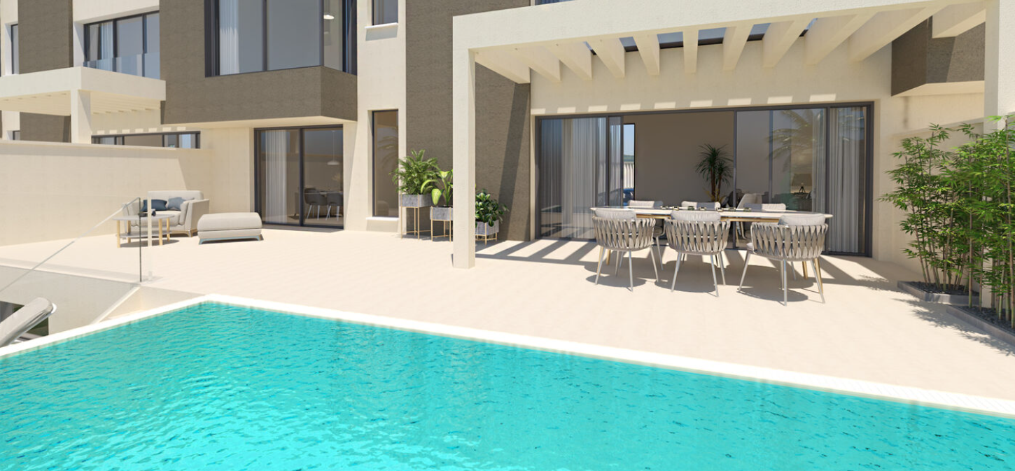 Hay 4 chalets todavía disponibles, de los cuales uno es una parcela de esquina más grande y viene totalmente amueblado en 1.398.915€.