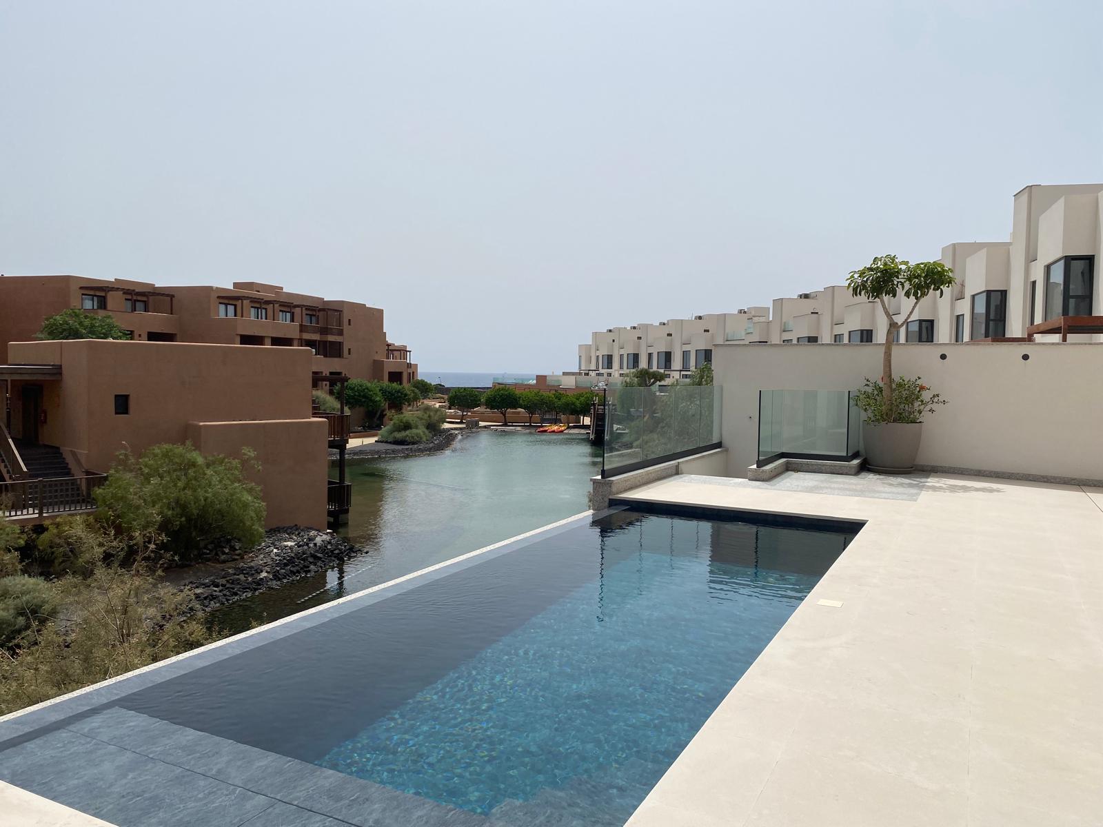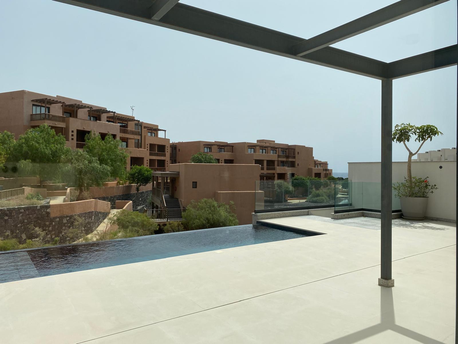 De los 343 m2 construidos total, apróx. 140 m2 son el espacio total exterior entre; piscina, terrazas y aparcamiento.