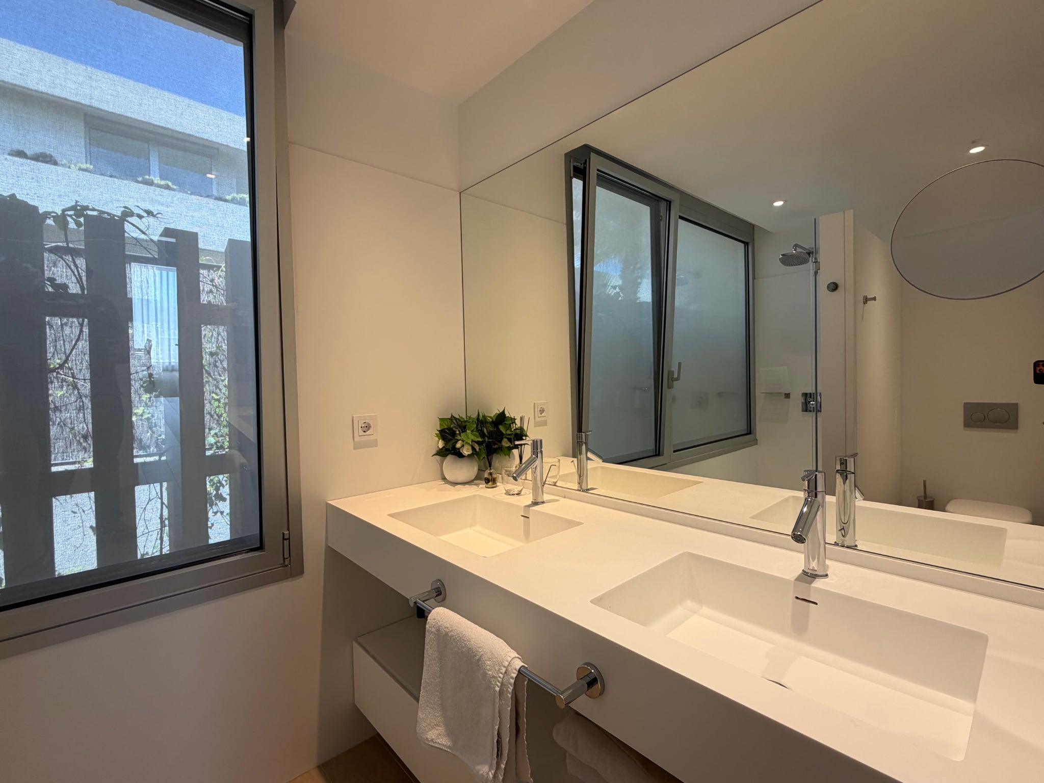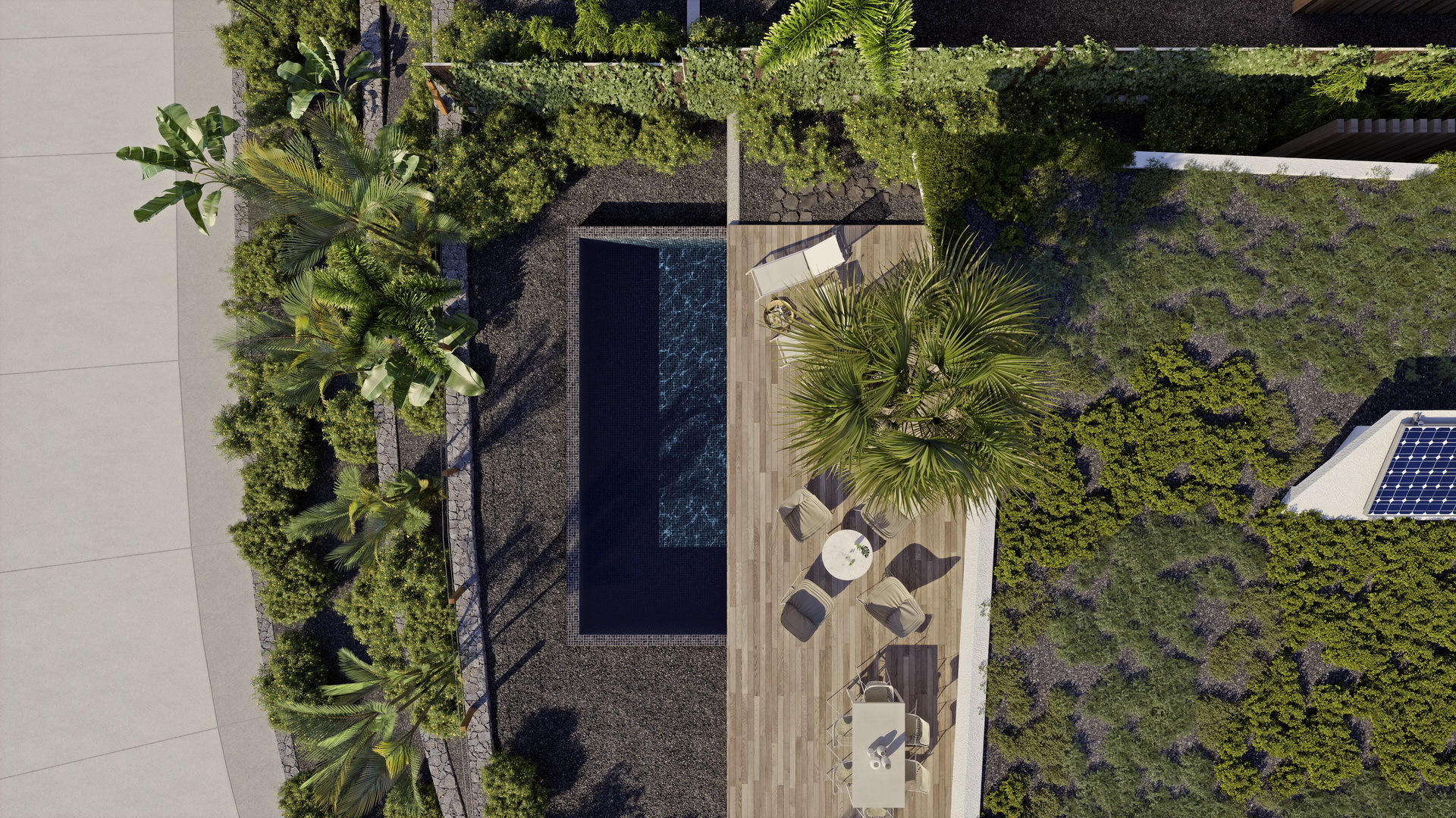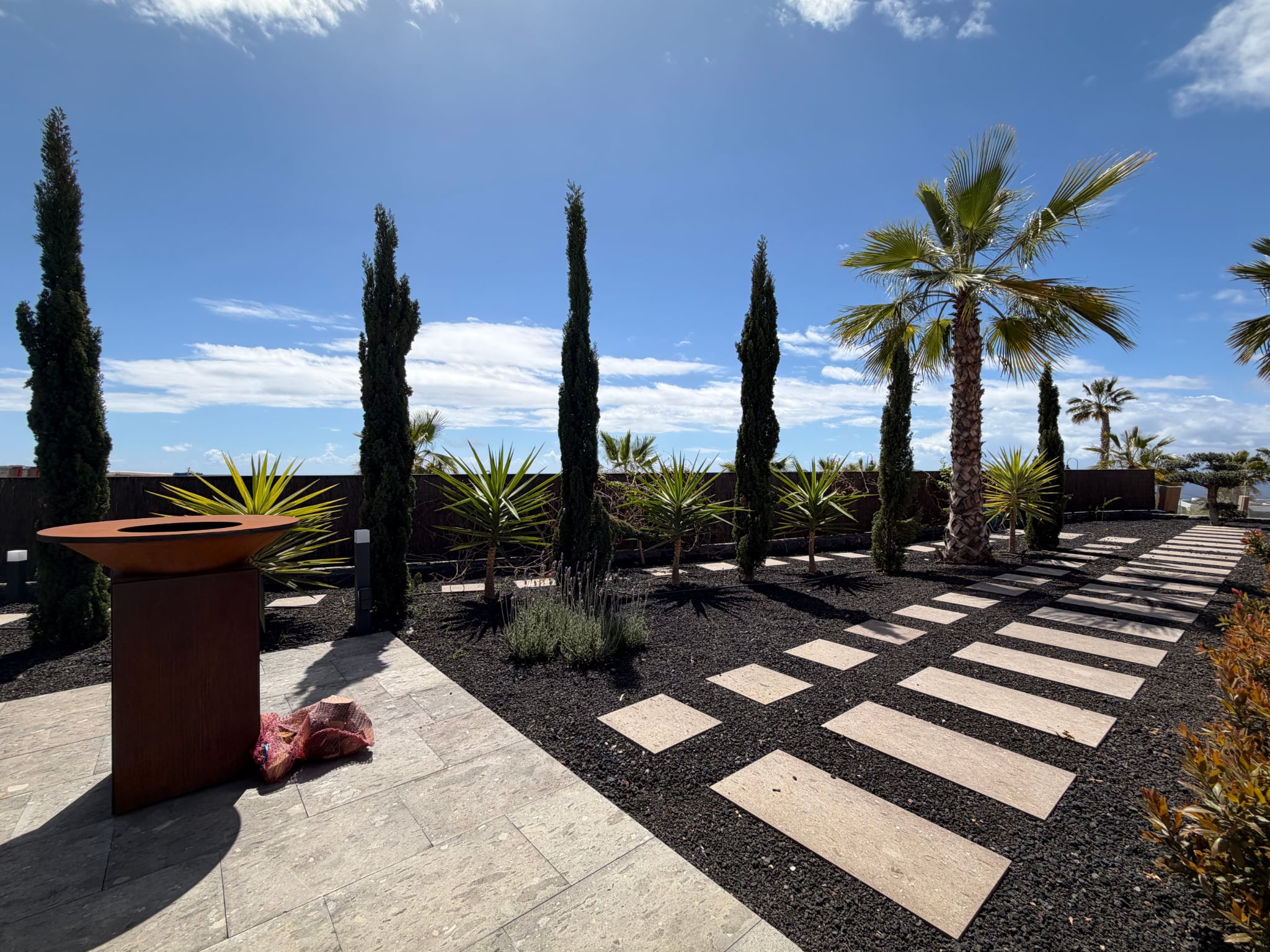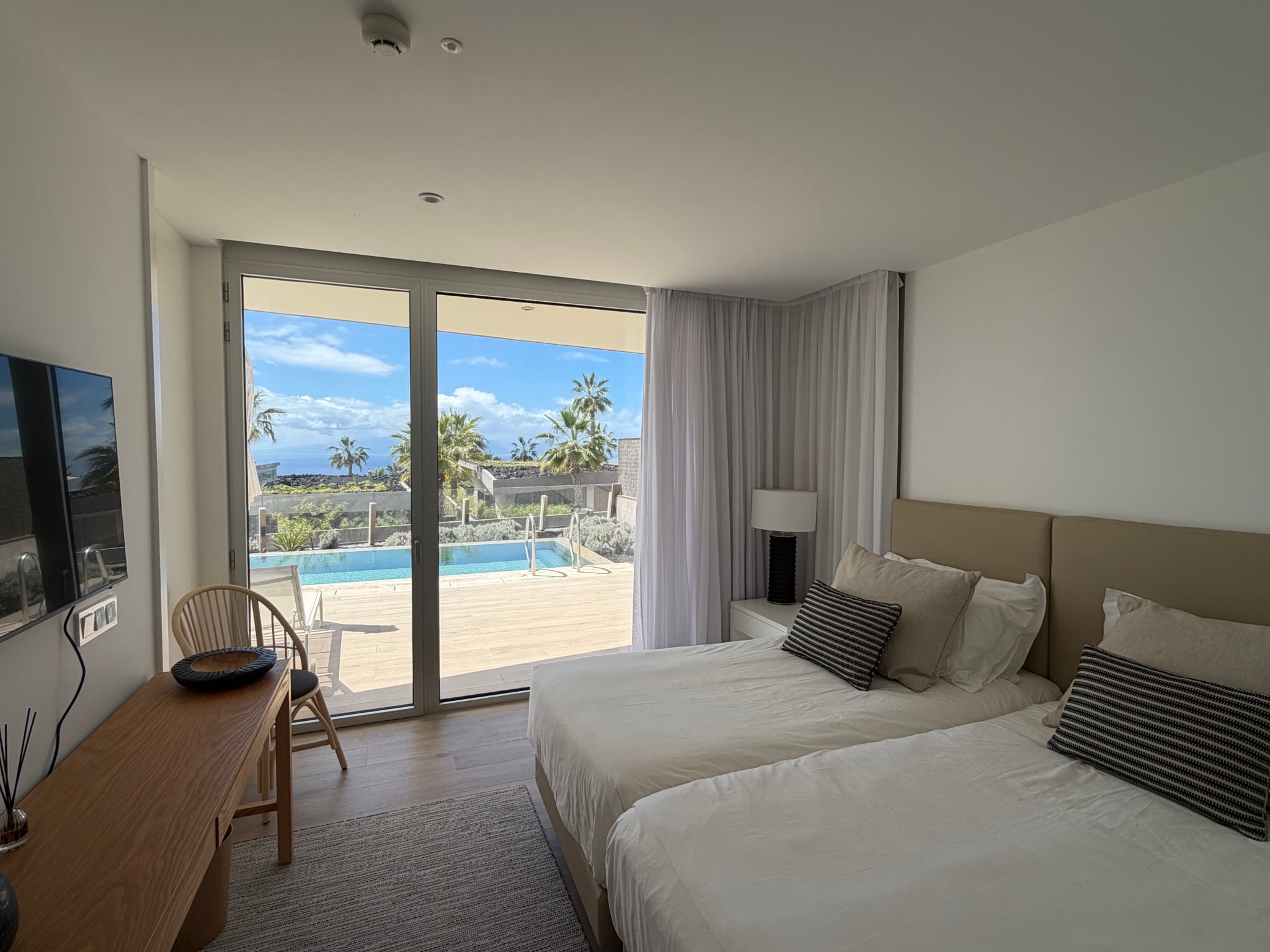 La villa cuenta con 3 amplios dormitorios con vestidores, 2 baños modernos con duchas, un salón luminoso con grandes ventanales que se abren a la terraza y al jardín. La piscina infinity privada y climatizada es perfecta para refrescarse y disfrutar del clima de Tenerife, mientras que el exterior incluye zonas para comer al aire libre y relax.