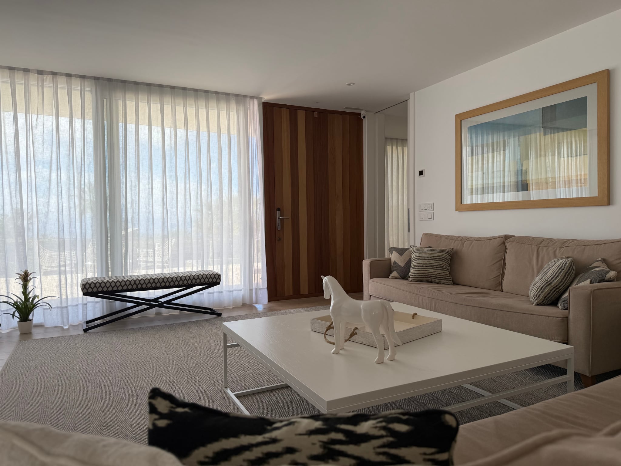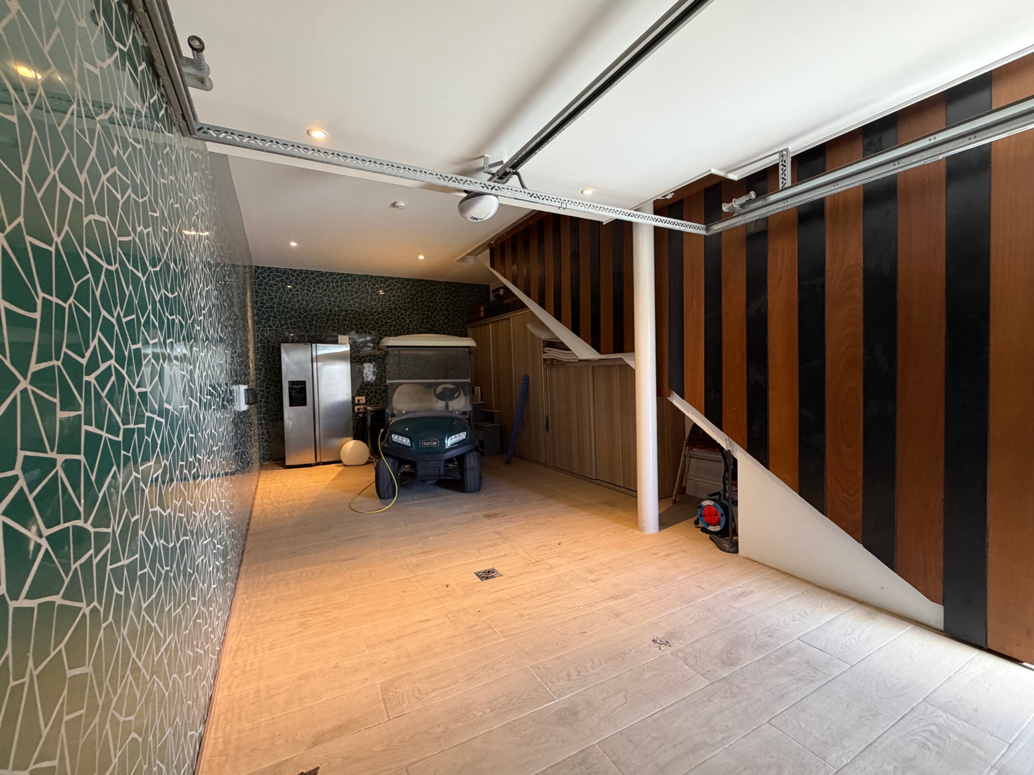 La propiedad incluye un garaje para un coche y un buggy, además de venderse completamente amueblada con mobiliario de lujo, incluyendo los muebles exteriores. Las ventanas disponen de persianas automáticas que regulan la luz solar sin sacrificar luminosidad.