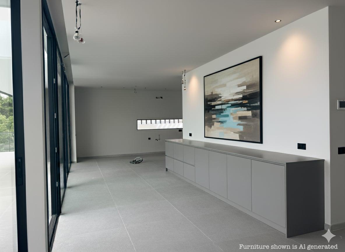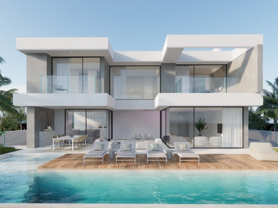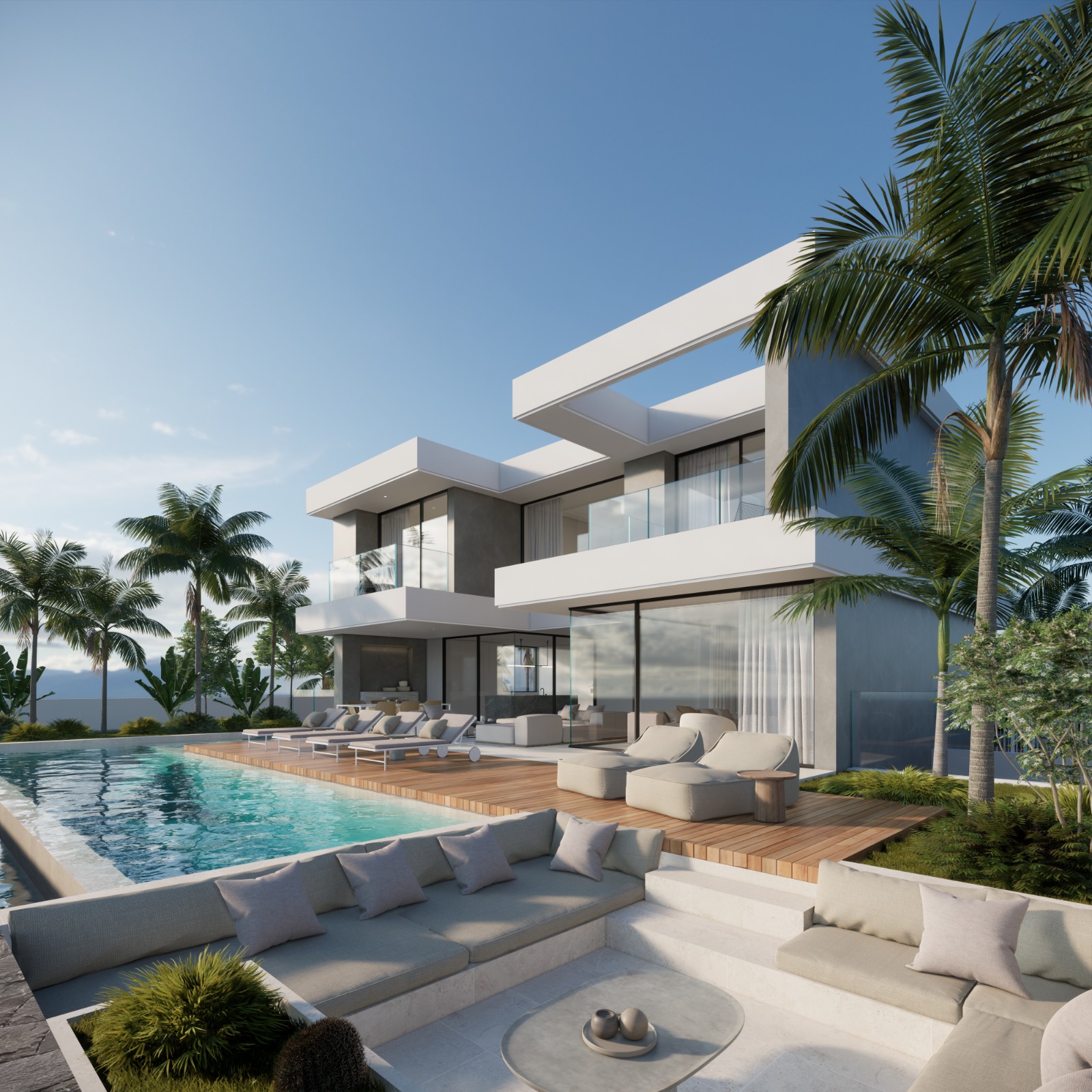 Con un espectacular diseño de concepto abierto, la villa se distribuye en 3 plantas, accesibles mediante ascensor o escalera flotante, y cuenta con amplias zonas de estar y comedor con puertas correderas de cristal de suelo a techo que se ocultan en las paredes, creando una perfecta integración entre el interior y el exterior.