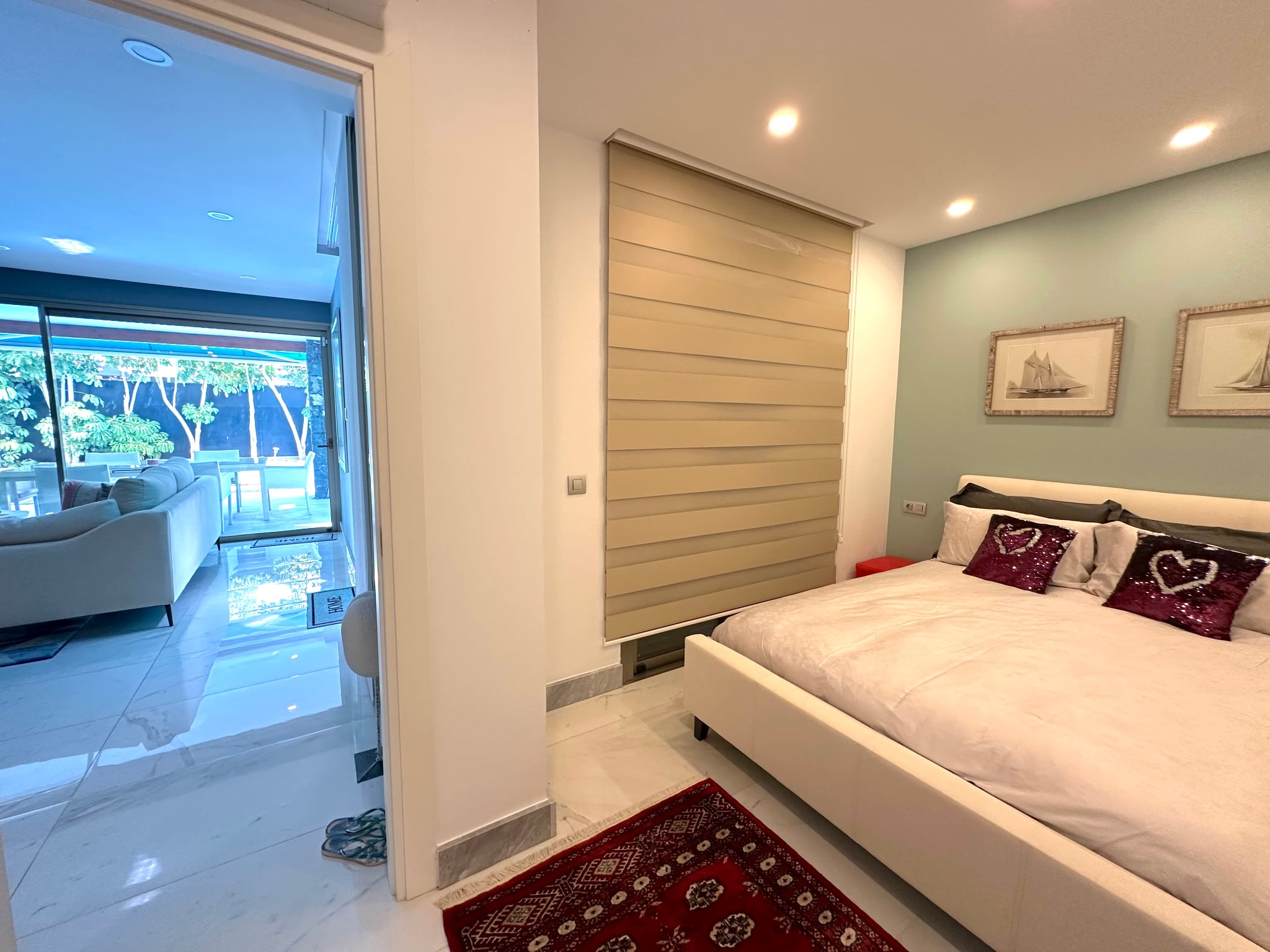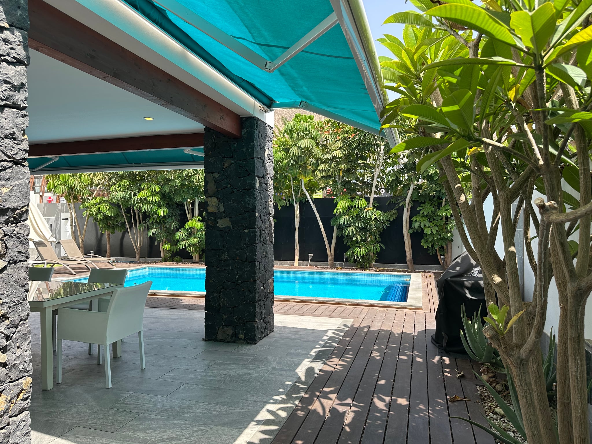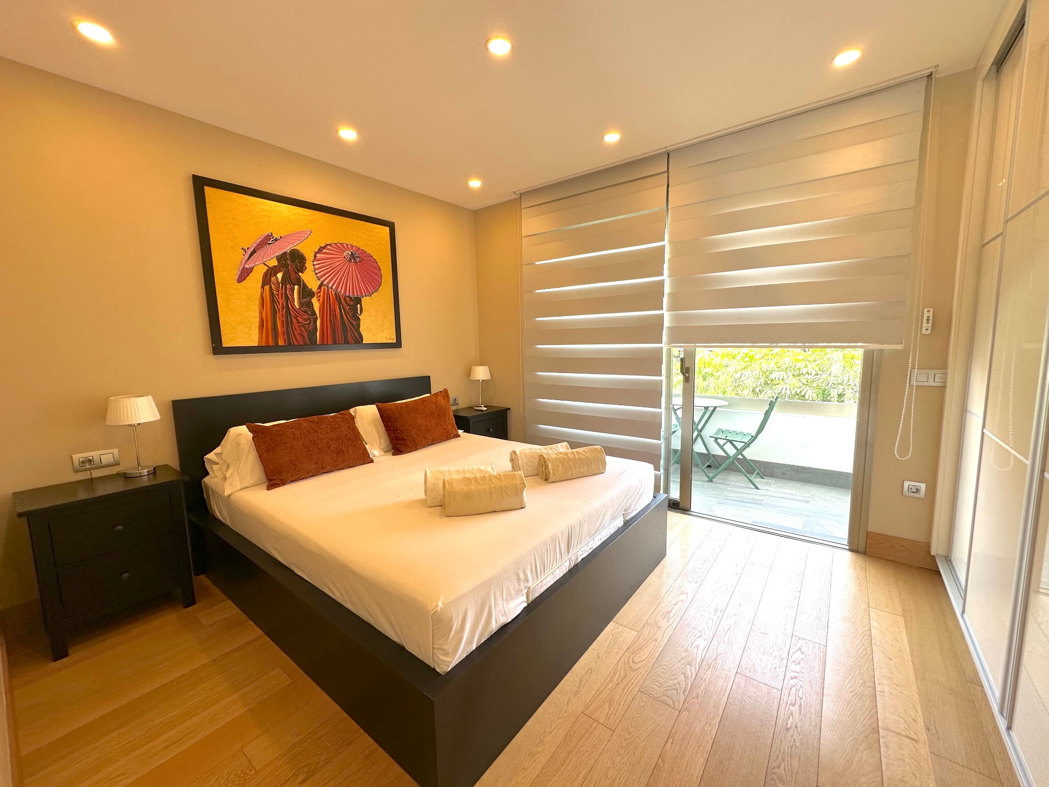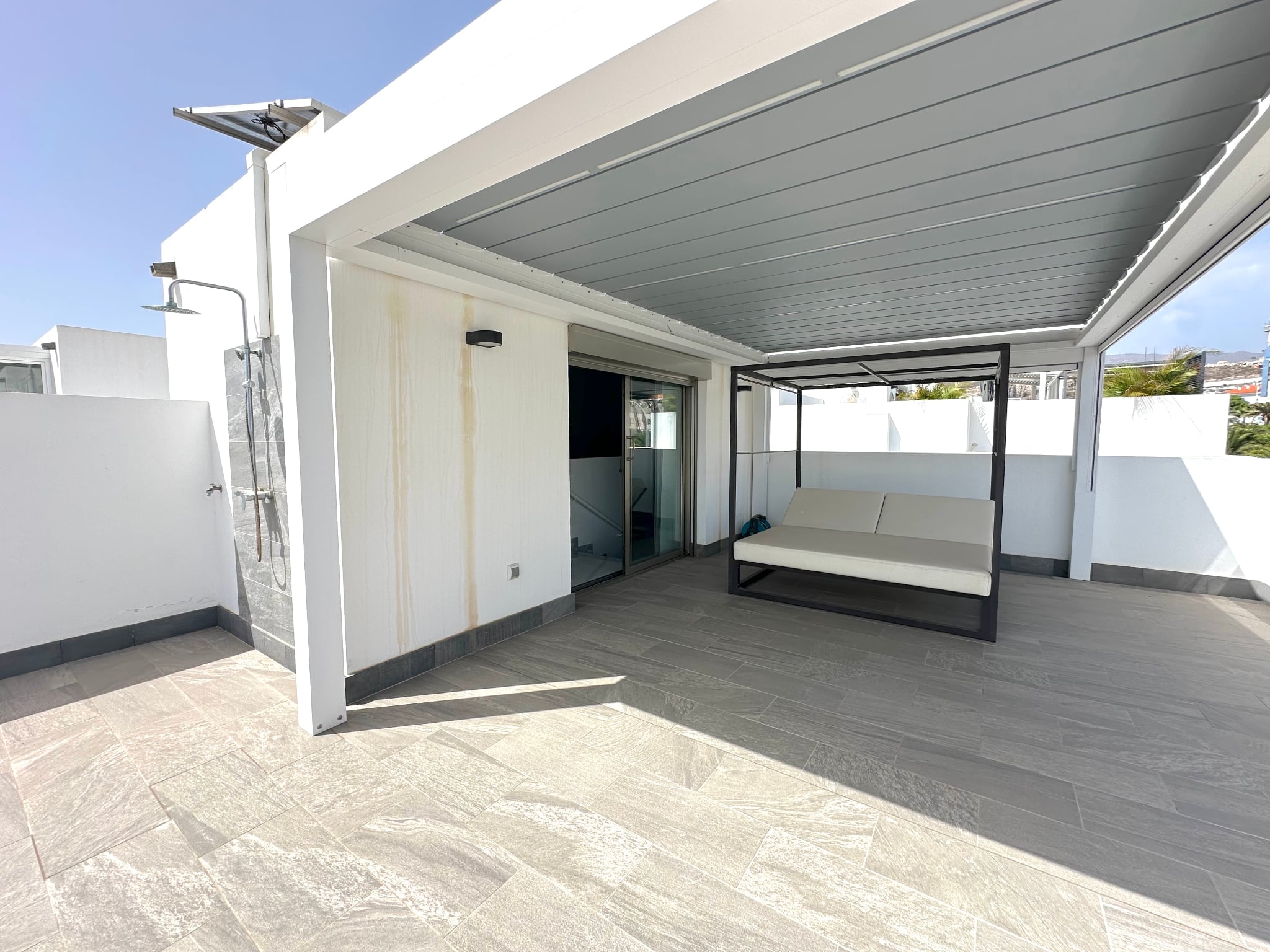 La villa cuenta con 3 amplios dormitorios, todos con baño en suite, suelos de madera y terrazas privadas que garantizan la privacidad.