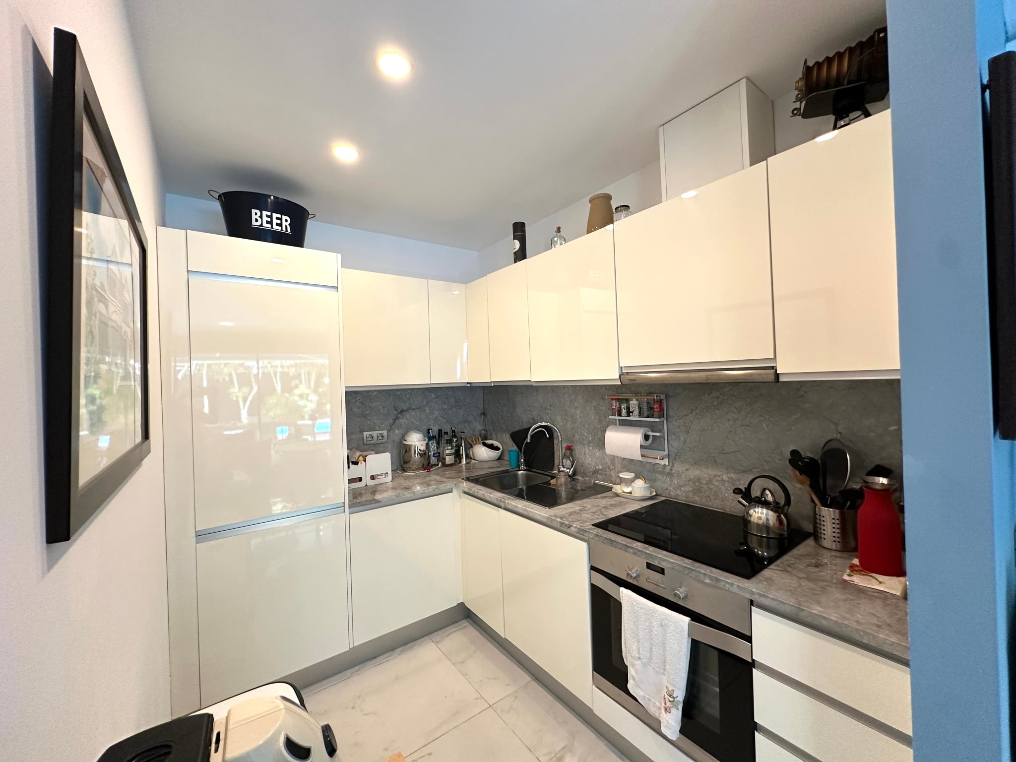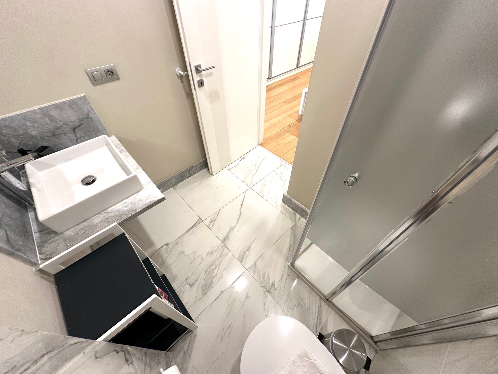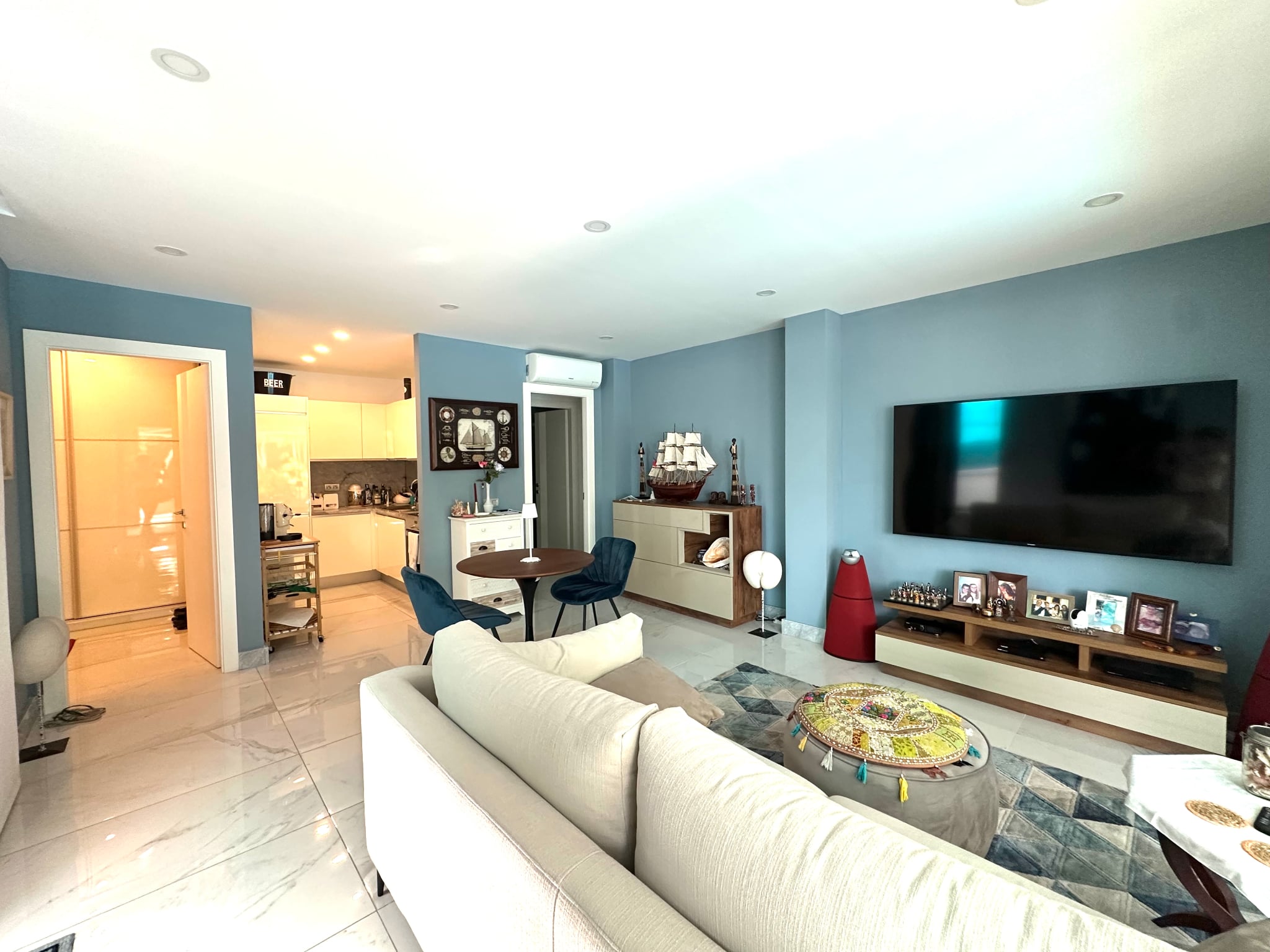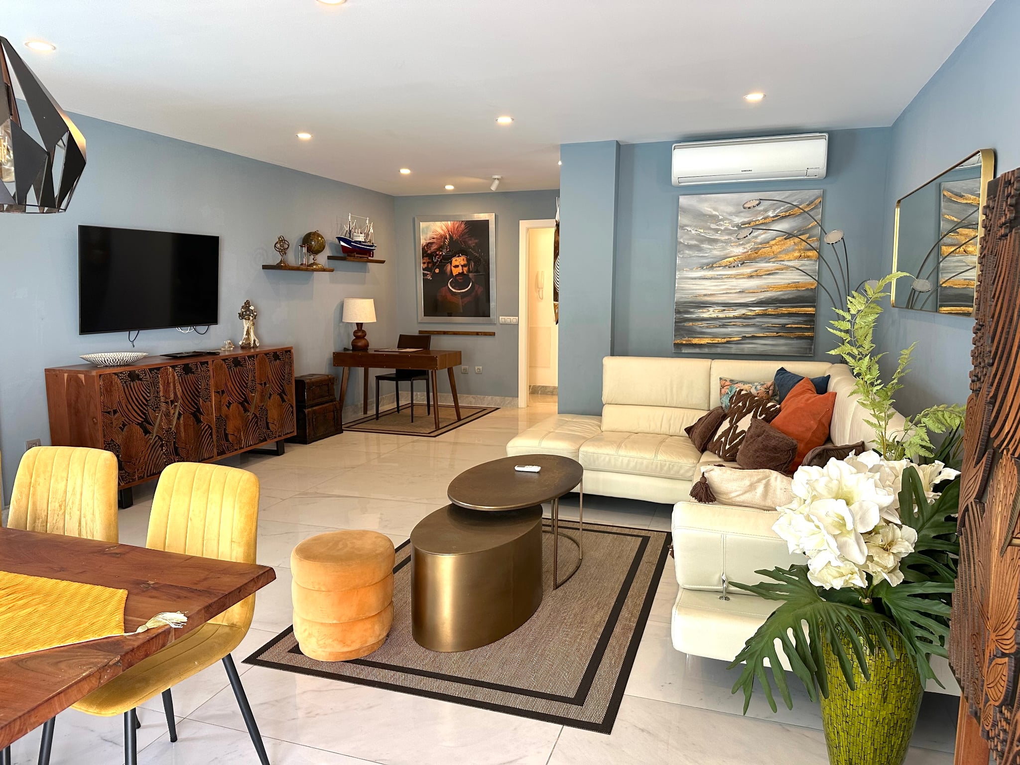 Garaje privado de 130 m² con capacidad para hasta 5 coches y acceso directo a la propiedad. Aire acondicionado en todas las habitaciones.