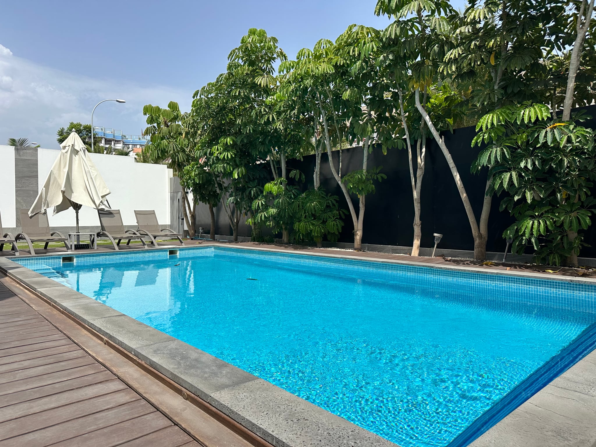 Piscina privada climatizada rodeada de un jardín impecablemente cuidado: un auténtico oasis privado.